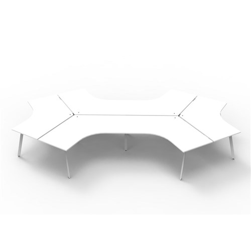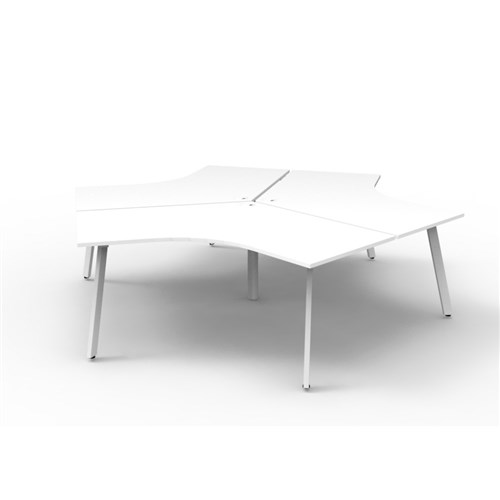 Overall Dimensions: 2866W x 2480D x 730mmH. Dimensions Per User: 1205W x 1205D x 730mmH. White worksurface with a 60 x 30mm powder coated white Eternity leg underframe. 1 x 80mm diameter cable entry hole. 30mm cable access void in between double sided users. Infill rail available at additional cost. Dual cross bar for added stability. E0 enviroboard melamine worksurface. Adjustable leveling feet. 5 Year Manufacturer's Warranty. Delivery, installation and assembly charges may apply to furniture. Please enquire to confirm.