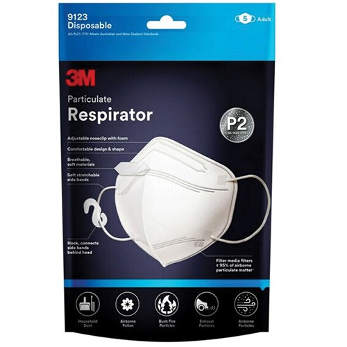 Helps protect against airborne particulates. The respirator is worn over the mouth and nose and attaches via elastic side bands with hook attachment behind the base of the head/top of the neck. 3M Advanced Electrostatic Media Filtration technology. Flat fold. Suitable for house hold dust, airborne pollen, bush fire particles, exhaust particles and airborne particles.