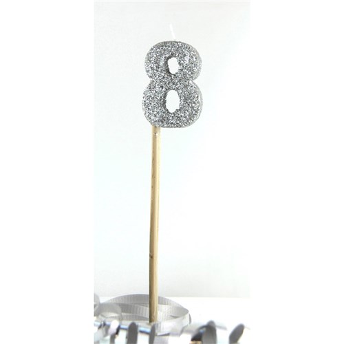 Alpen Candle Long Stick Glitter No. 8 Silver