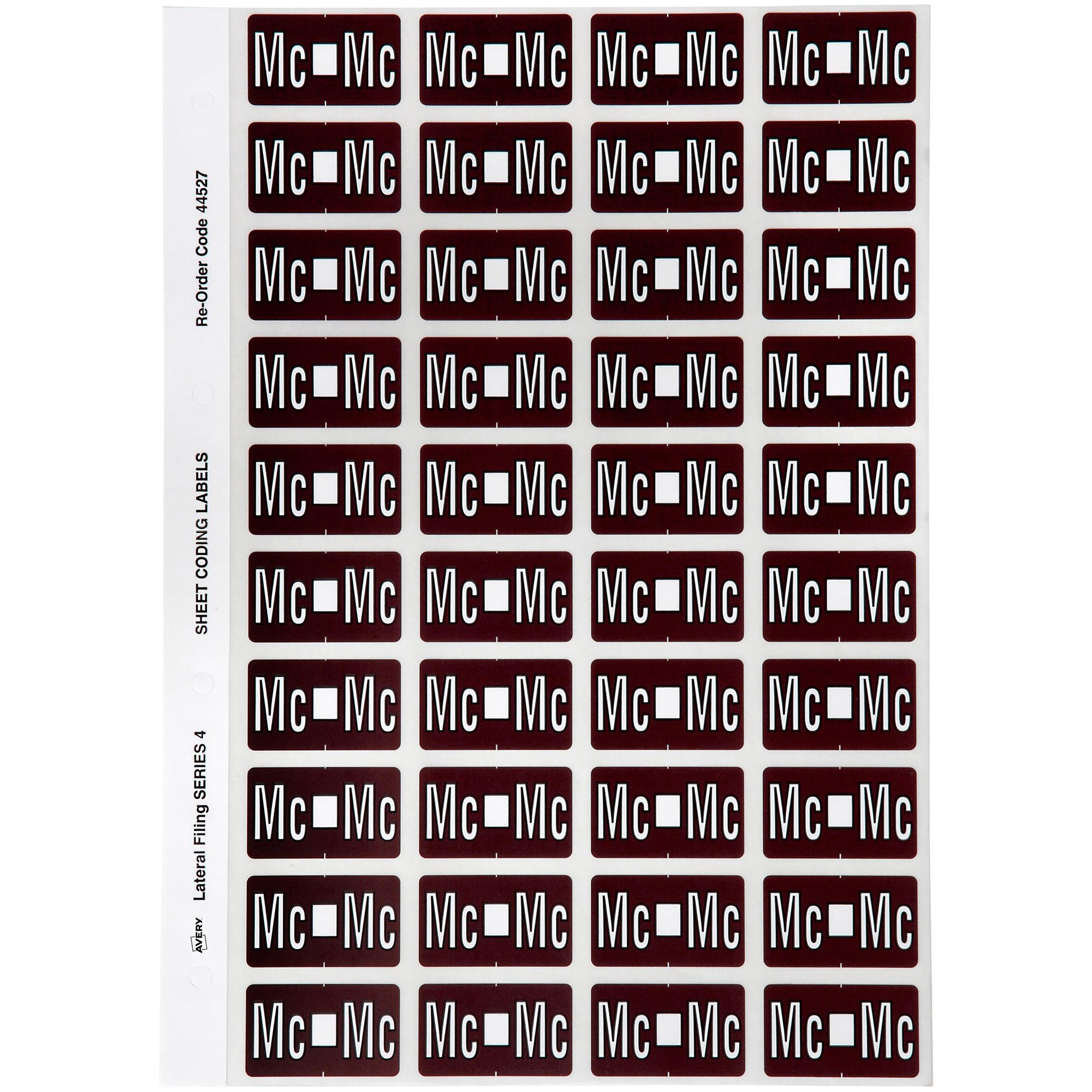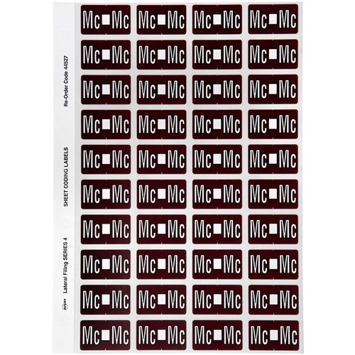 Apply on the side of your files. Each alpha from 'A'-'Z' including 'Mc' is given a different colour for easy identification. Colour coding makes it easier to find files and eliminate misfiling.