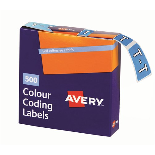 Avery Alphabet Coding Label T Side Tab 25x38mm Blue Box Of 500