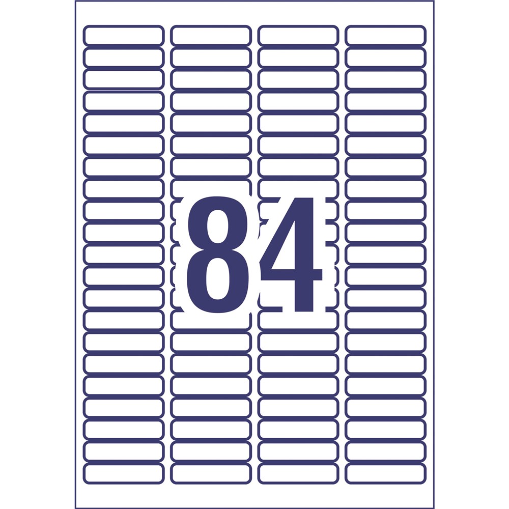 • Size: 46 x 11.11mm 2100 labels, 25 sheets. 84 labels per sheet (84UP).