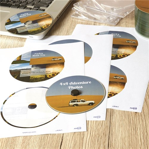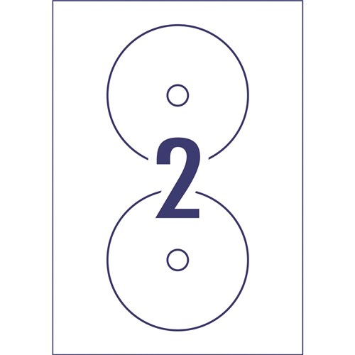 Organise your media for easy retrieval or archiving. Guaranteed jam free printing on laser printers. Customise your labels with Avery Design and Print, available at averyproducts.com.au/print. Size: 117mm diameter. 50 labels, 25 sheets. 2 labels per sheet (2UP).
