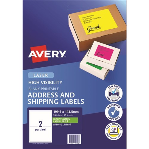 Avery High Visibility Shipping Laser Labels Green L7168FG 199.6x143.5mm 2UP 20 Labels