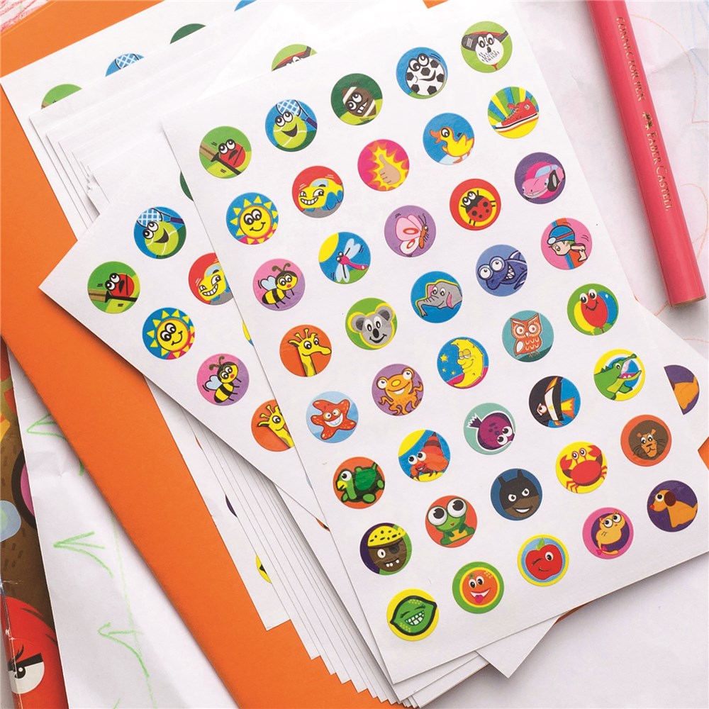 Mixed fun designs, to suit children of all ages. Perfect for teachers and parents rewarding children. Bright and colourful designs that will attract and inspire children to collect. Stickers stick onto most surfaces to reward children in any situation. Dimensions 13 mm diameter. Contents: 800 labels. Assorted Pack Of 20 mixed designs.