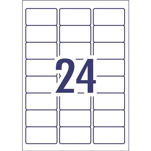 • Size: 64x33.8mm 2400 labels, 100 sheets. 24 labels per sheet (24UP).