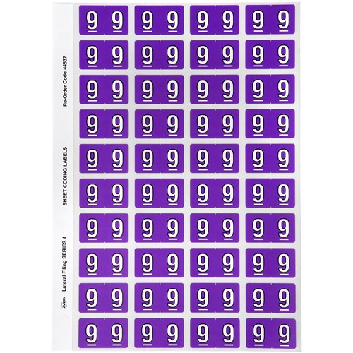 Avery Numeric Coding Label 9 Side Tab 25x42mm Purple Pack Of 240