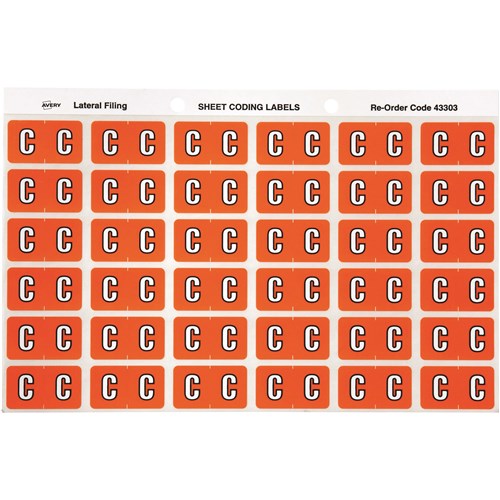 Avery Alphabet Coding Label C Side Tab 25x38mm Orange Pack Of 180