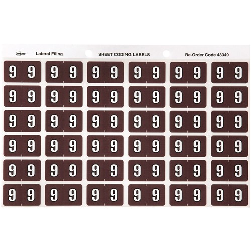 Avery Numeric Coding Label 9 Side Tab 25x38mm Brown Pack Of 180