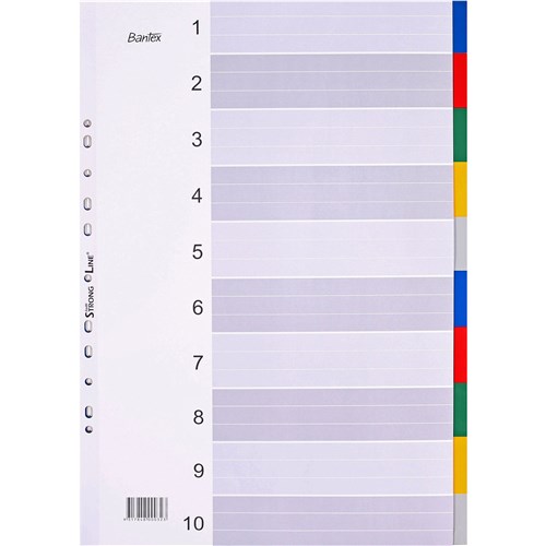 The Bantex A3 Dividers are perfect for filing away those larger documents. These dividers are made from strong polypropylene material to ensure their durability. Includes 5 or 10 coloured tabs for easy filing. Available in landscape or portrait formats.