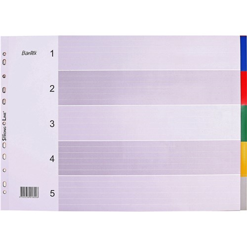 The Bantex A3 Dividers are perfect for filing away those larger documents. These dividers are made from strong polypropylene material to ensure their durability. Includes 5 or 10 coloured tabs for easy filing. Available in landscape or portrait formats.