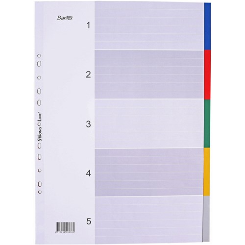 The Bantex A3 Dividers are perfect for filing away those larger documents. These dividers are made from strong polypropylene material to ensure their durability. Includes 5 or 10 coloured tabs for easy filing. Available in landscape or portrait formats.