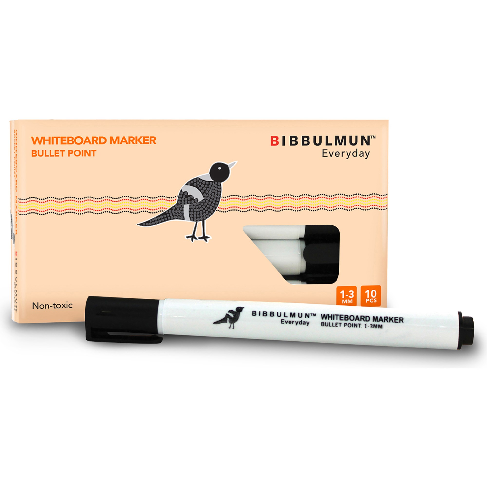 For use on white board and dry erase non-porous surfaces like glass and glazed ceramic. Hard acrylic tip. Alcohol based ink - Vivid colors. Wipes off with dry tissue. Ventilated cap. Also available in pack of 10. The Bibbulmun Range contributes part proceeds to the Bibbulmun Fund which supports Indigenous communities by using targeted programs to develop them in life-changing ways.
