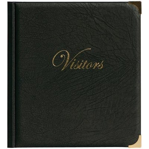 Designed to hold the Visitors Pass Register (CVSFR). Black covered binder with protective brass corners. Built in writing plate. Gold blocked Visitors on the cover.