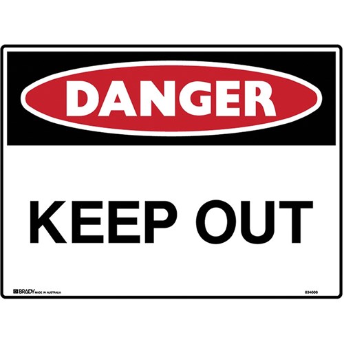 Brady Danger Sign Keep Off 600W x 450mmH Polypropylene White/Red/Black
