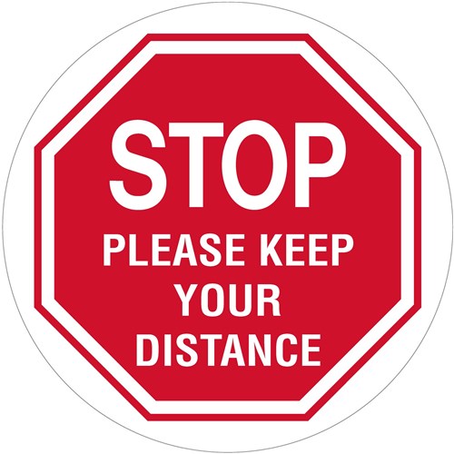 Brady Floor Marker Stop Please Keep Your Distance 440mm Diameter Red/White