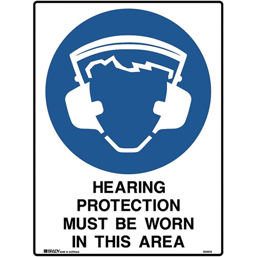 Brady Mandatory Sign Hearing And Eye Protection 450W x 600mmH Poly White/Blue