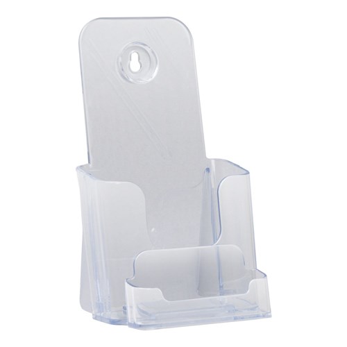 Creates an all-in-one display with card holder and brochure holder combo. Constructed of durable clear polystyrene plastic. Attractive and functional design. Free standing or wall mount.