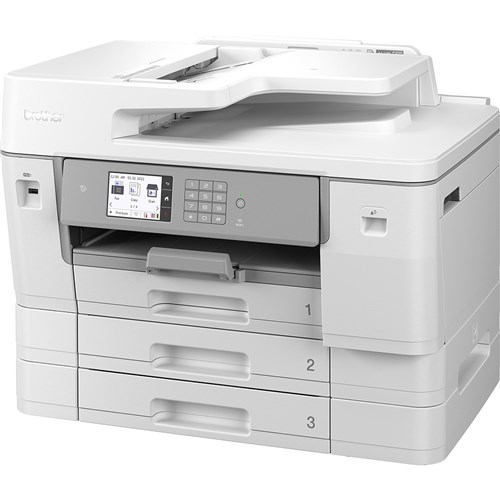 Type: A3 Colour Inkjet Multifunction Printer. Print, scan, copy and fax. Up to 30 ppm print speed. Automatic 2-sided (duplex) A3 print, scan, copy and fax. 3 x 250 paper trays up to A3, 100 sheet multi-purpose tray up to A3. USB, Dual Band (2.4GHz/5Ghz) Wireless Network, Ethernet, Wi-Fi Direct & NFC. 8.8cm colour touchscreen. Up to 50 sheet 2-sided (duplex) ADF up to A3. NFC (Near-Field Communication) for secure authentication, mobile print and scan. Up to 1 years of ink supplied in-box. 2 Years Manufacturer's Warranty.