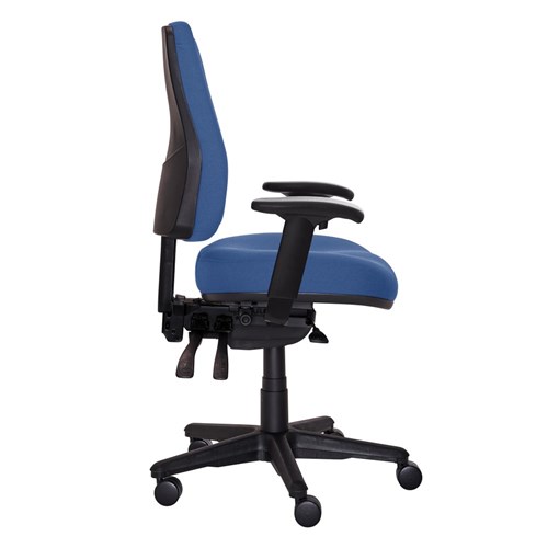 Chair Capacity: 180Kg. Composition: Upholstered seat and back, aluminium base. Seat Width: 520mm. Seat Depth: 490mm. Back Height: 535mm. Indicative Seating Time: 8+ hours. 60mm twin wheel castors, 3 lever chair. Depth adjustable seat slide. AFRDI Certified. 10 Year Manufacturer's Warranty. Delivery, installation and assembly charges may apply to furniture. Please enquire to confirm.