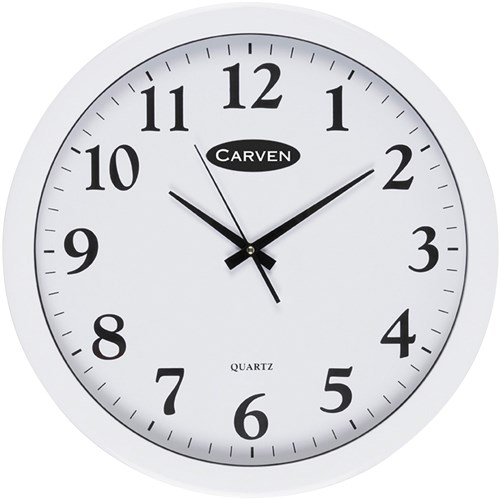 High quality analogue clock that can be wall mounted. Large, clear numbers and quality hands. White, round face and rim. Requires 1xAA battery not included. Glass face.