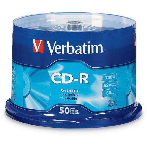Verbatim Recordable CD-R 80Min 700MB 52X Spindle Pack Of 50