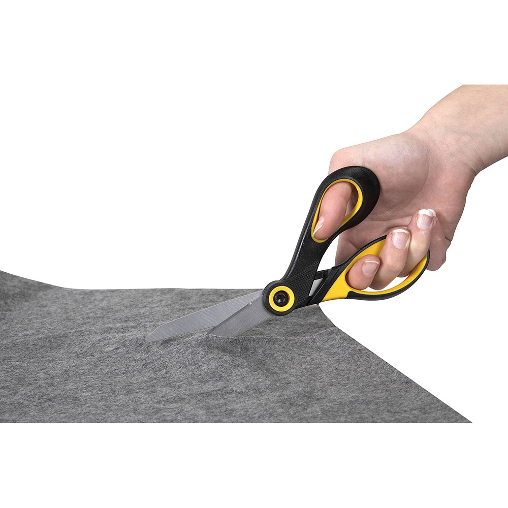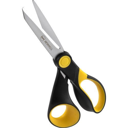 Titanium coated blades ensure this scissor will stay sharp and perform every time. Blades are three times harder than stainless steel. Rubberised grip on handles for comfort when in use. Extra large finger holes to fit all.