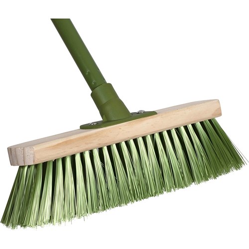 Medium fibre designed for outdoor use. Lightweight, push broom. Can be hung from hooks for easy storage. Sturdy, plastic coated metal handle. 120cm handle.