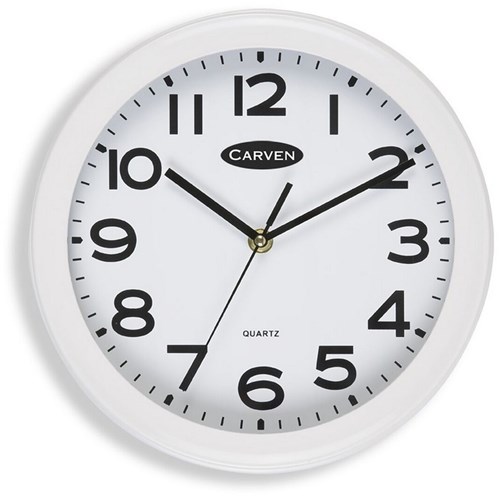 High quality analogue clock that can be wall mounted. Large, clear numbers and quality hands. White, round face and rim. Requires 1xAA battery not included. Glass face.