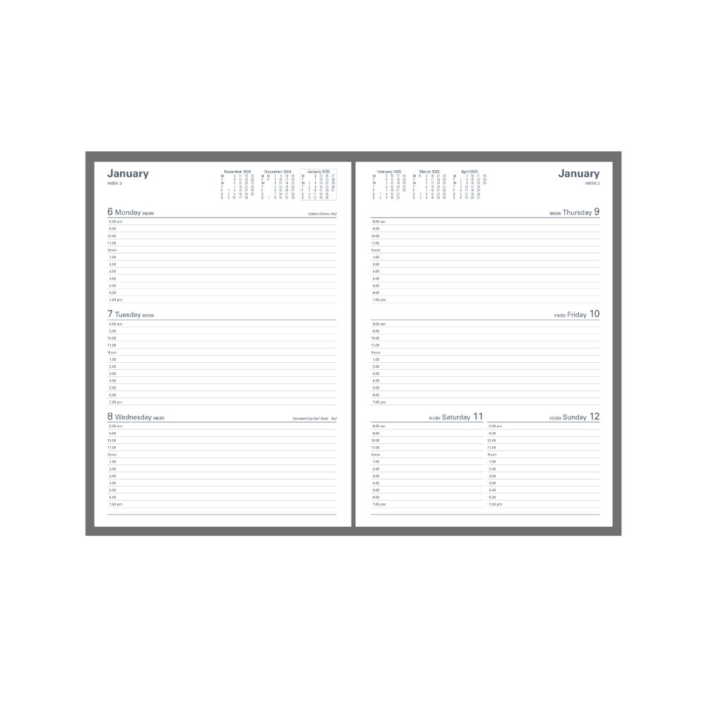 Designed with the value-conscious in mind. Bound in a practical, hardwearing, linen-look cover. Perfect tool for any small business. Hourly appointment times. Monthly planners, staff leave and financial summary. 3 year calendars. Addresses and notes. Australian and International holidays. Current and forward year planners. Tax information. Breeding table and rain chart. International dialling.