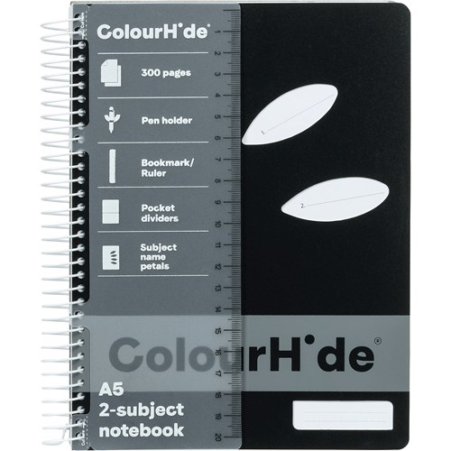 ColourHide Subject Book A5 2 Subject Side Bound 300 Page Black
