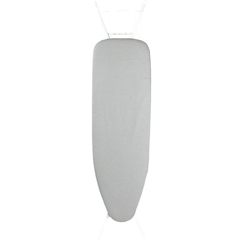 Complete with silver cover and iron caddy. Folded size: 1470L x 340D x 60mmH. Table top size: 1100 x 330mmW. Open height: 900mm. Leg tube diameter: 22mm. Board thickness: 30mm. Weight: 3.7kg.