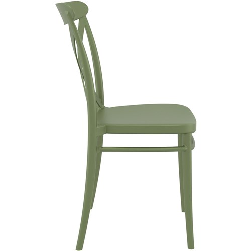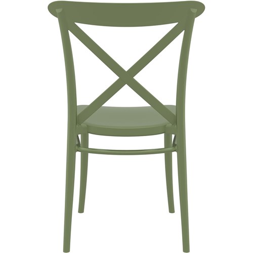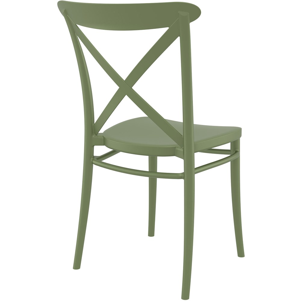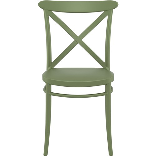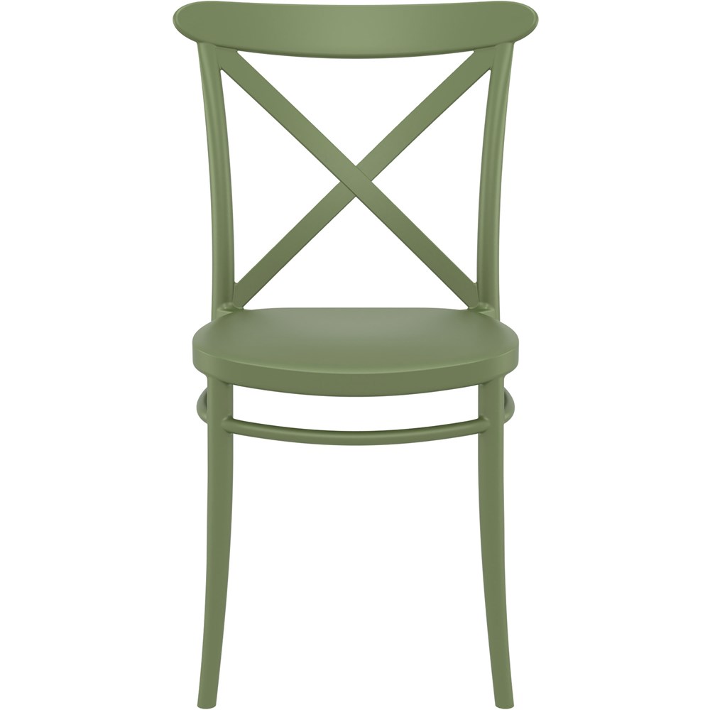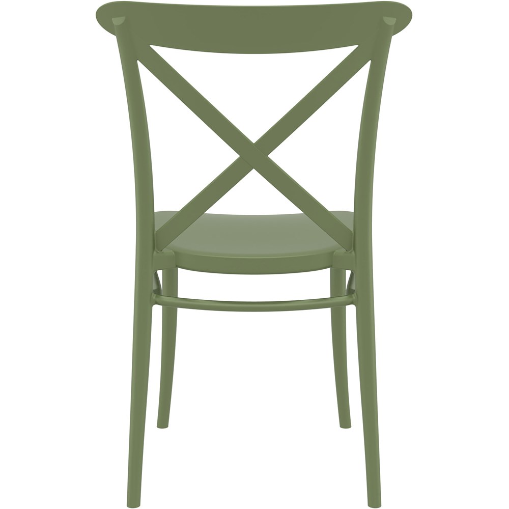 Cross Back Hospitality Dining Chair Indoor Outdoor Use Stackable Poly Olive Green