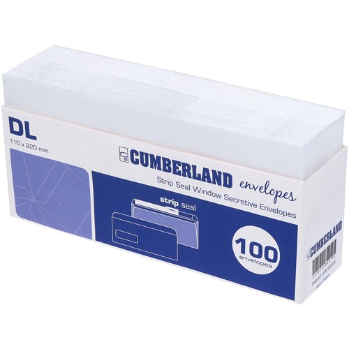 Cumberland Window Face Envelope DL Strip Seal Secretive White Pack Of 100