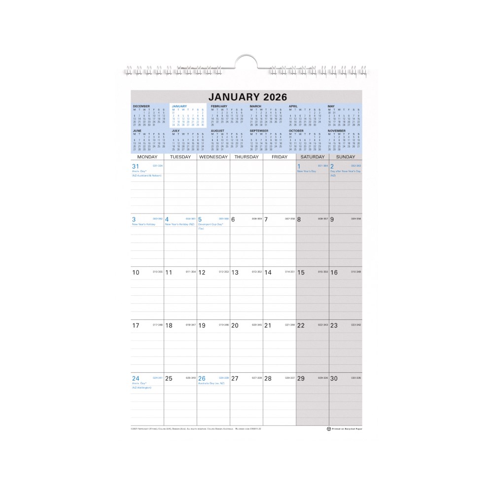 Featuring easy-to-read graphics and a clear layout, the 12-month progressive calendars atop each page serve as useful reference tools. Features: Australian and New Zealand Holidays Julian Days (Calendar Only) Shaded Saturday and Sunday. Size: 297 x 210mm. FSC Certified.