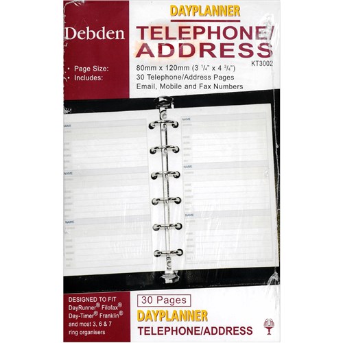 Debden Dayplanner Refill Telephone Address Directory 120x80mm Pocket Edition