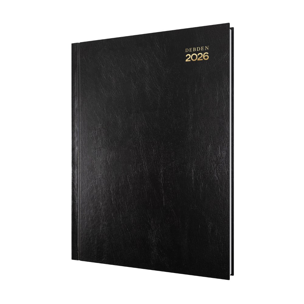 It is bound in a smart, durable black cover with gold details and a silk satin finish ribbon marker. Full Saturday and Sunday pages. 3 year calendars. Appointment times from 8am - 6pm 1/2 hourly. Current and forward year planners. International holidays, International dialling and time zone map. Addresses and Notes. Staff leave and financial summary. Size: 297 x 210mm. FSC Certified.