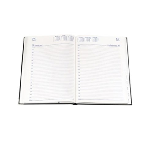 Bound in black bonded leather with silver corners and page edging. Appointment times from 8am - 6pm 1/2 hourly. Australian and New Zealand Holidays. Ribbon marker. Lay flat opening. Tabs. Size: 297 x 210mm. FSC Certified.