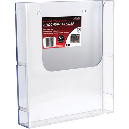 Unique linking design enables you to create your own wall displays Attractive curved design wall mount brochure holder displays your brochures prominently and neatly Pre-drilled holes for easy wall mounting Constructed of clear durable plastic