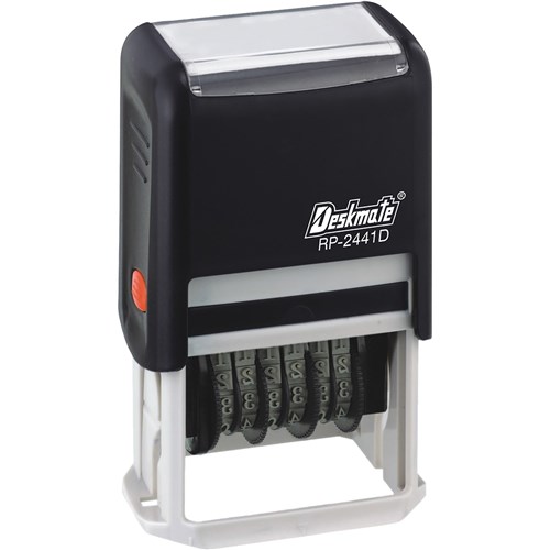 Self-inking dater stamp. All daters print day, month and year. Built in ink pad - red date with blue text. Each stamp has 12 consecutive years of date bands. Impression size: 4mm date size. Max impression Area: 26 x 40mm.
