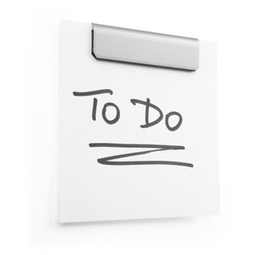 Magnetic clip for notes, reminders and appointments etc. Self-adhesive attachment on smooth, attachable surfaces such as cabinets, fridges, glass doors or showcases. Residue-free removal from smooth, attachable surfaces. Attachment of clip on side or top of document depending on space needs.