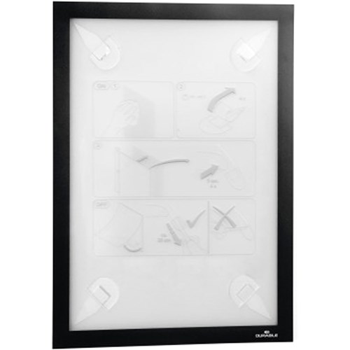 The ideal solution for displaying information on sensitive surfaces. Presents information in a high quality and professional way. Quick insertion and exchange of documents via a fold-back magnetic frame. Can be attached to wallpaper, wood and most plastics thanks to the use of adhesive strips. Fields of application: for documents such as orientation signage and other information.