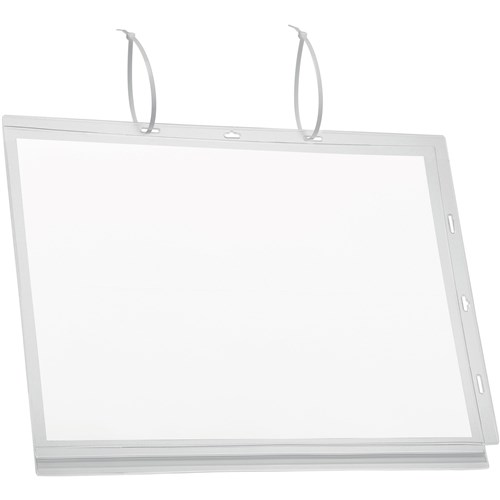 Water resistant, cable tie pockets for displaying notices or signs. The water proof pressure closure protects the contents against rain, humidity and dirt. Tested to IPX5 standards (can resist a sustained low pressure water jet spray). Can be used in portrait or landscape format. Anti-reflective.