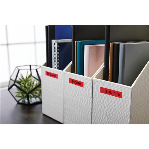• Print on D1 Label Tape & D1 Durable tapes which are available in a variety of colours of sizes 6mm, 9mm, 12mm & 19mm.