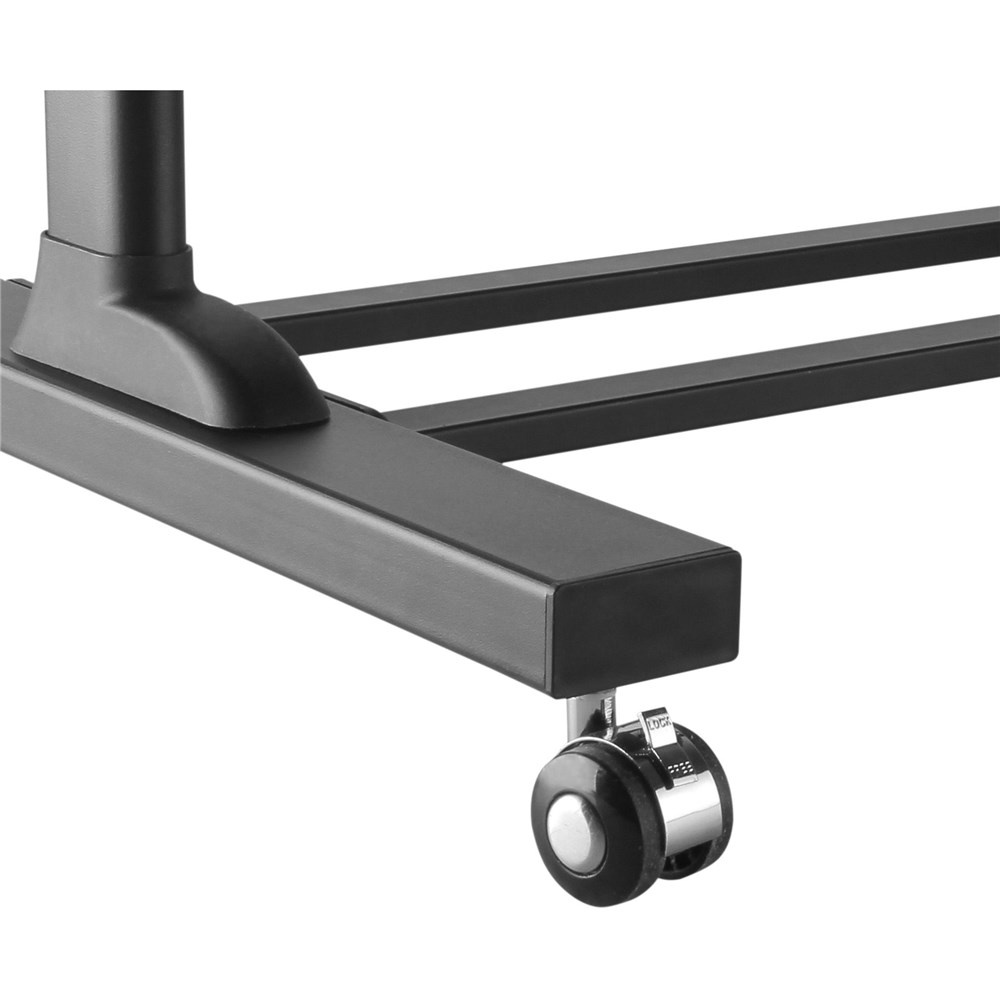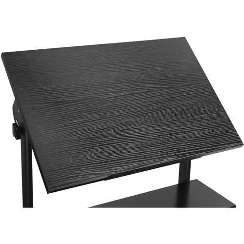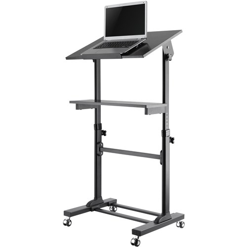 Silver frame Black top. Tiltable 0-40 degree top shelf. Manual height adjustment. Rotary knob lock. 4 casters, 2 locking for mobility. 3 Year Manufacturer's Warranty. Delivery, installation and assembly charges may apply to furniture. Please enquire to confirm.