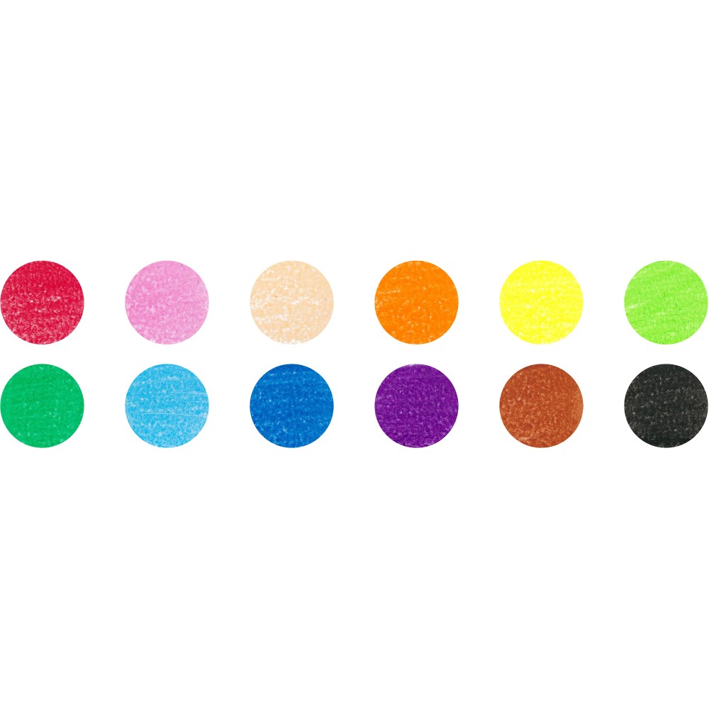 Classroom-sized pack of 144 Jumbo Twist Wax Crayons, containing 12 each of 12 brilliant, vibrant colours Large round barrels are designed especially for small hands Twistable leads never need sharpening and create no mess Soft, high-quality pigments cover large areas with vivid colour Break-resistant leads create a strong, longer-lasting crayon Richly pigmented leads are non-toxic and safe for kids Washes out of most fabrics for peace of mind and easy clean-up
