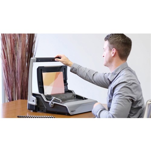 Full-size premium comb binder for the largest comb binding applications. Electronically punches up to 28 sheets of paper at a time (80gsm). Satellite removable binding platform allows multiple users to punch and bind simultaneously. Electric punching for ultimate ease of use. Binds documents up to 500 sheets - max comb width 51mm. Back margin adjustment selector for thicker documents. Front access full size storage tray for materials and documents. Patented comb & document measure allows user to select quickly. Adjustable edge guide aligns sheets accurately. Includes binding starter kit for 20 documents. 2 Year Manufacturer's Warranty.
