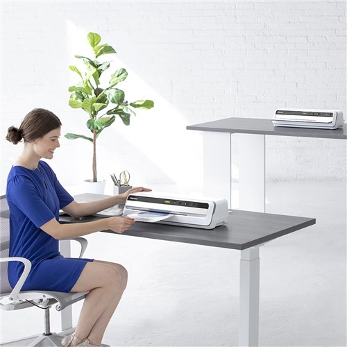 Prevents jams with an auto reverse mechanism. The manual reverse function ensures your laminator does not jam when using Fellowes branded pouches. Ready for use in as little as 60 seconds from switching it on. Auto shut off automatically powers down the machine after 30 minutes of inactivity, reducing its energy consumption. AutoSense detects pouch thickness and self adjusts to the optimal laminating setting for ultimate ease of use. Advanced pouch tracking with mini light guide and auto reverse for productive, jam free performance. Clean Alert System enables consistent results and laminator performance. Fast laminating speed of 140 cm/min max. 2 Years Manufacturer's Warranty.