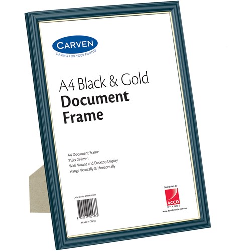 Carven Certificate Frame A4 Wall Mountable Black And Gold