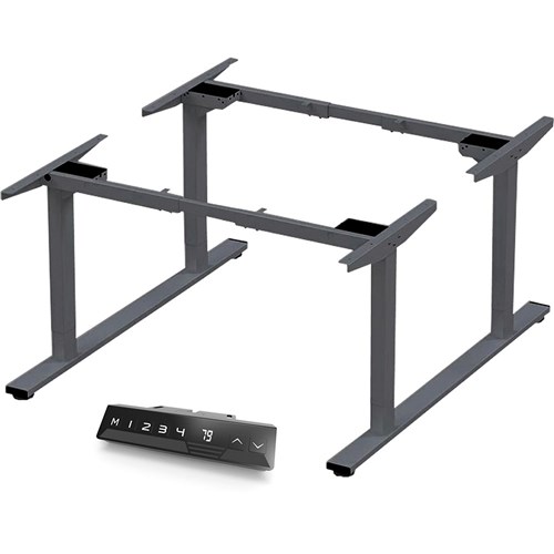 Frame Size: 1000-1800W x 1287D x 700-1200mmH. Suits top size from 1000 -1800mmW. Minimum depth of the desktop recommended is 600mm. 25mm thick table top is recommended. Heavy duty steel construction ensuring increased stability. Easy to use 4 stage memory storage height. Auto stop function. Load capacity: 1500N, maximum lift capacity is 120kg, speed at full load: 35mm/S. Includes 2 cable trays. All adjustments for the height are infinitely locking. Solid steel frame construction with a powder coated finish. 4 motors. Some assembly required. AFRDI approved. 5 Year Manufacturer's Warranty On Electrical Components. 10 Year Manufacturer's Warranty On Table Frame. Delivery, installation and assembly charges may apply to furniture. Please enquire to confirm.